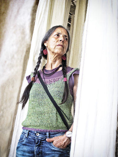 Παρόλο που η Βιολέτα σημαίνει πολλά πράγματα, την απεικόνισα ως «Πλέκτρια του κόσμου» γιατί αυτή ήταν και η μαγική της δραστηριότητα. Εδώ, την έβαλα να πλέκει τους στίχους του τραγουδιού της «Ευχαριστώ τη ζωή»*.