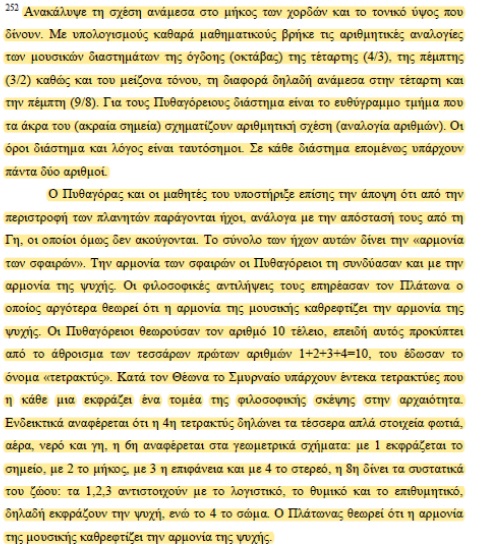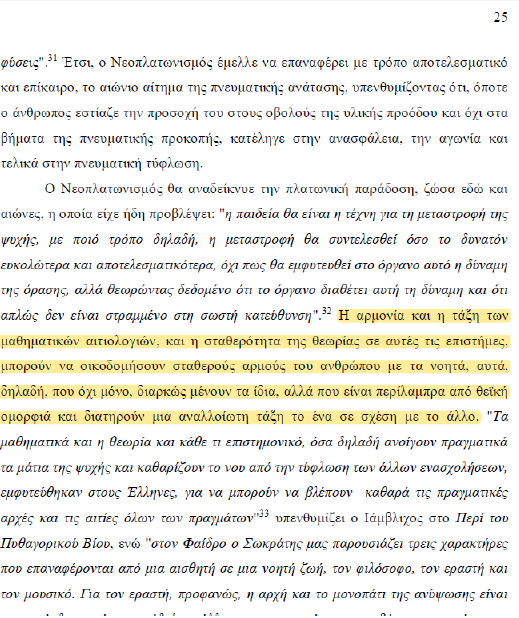 «Διότι η ομορφιά και η τάξη των μαθηματικών αιτιολογιών και η σταθερότητα της θεωρίας στις επιστήμες αυτές μας συνδέουν και μας τοποθετούν ανάμεσα στα νοητά αυτά που διαρκώς μένουν τα ίδια, που είναι περίλαμπρα από θεϊκή ομορφιά και διατηρούν μια αναλλοίωτη τάξη το ένα σε σχέση με το άλλο».
