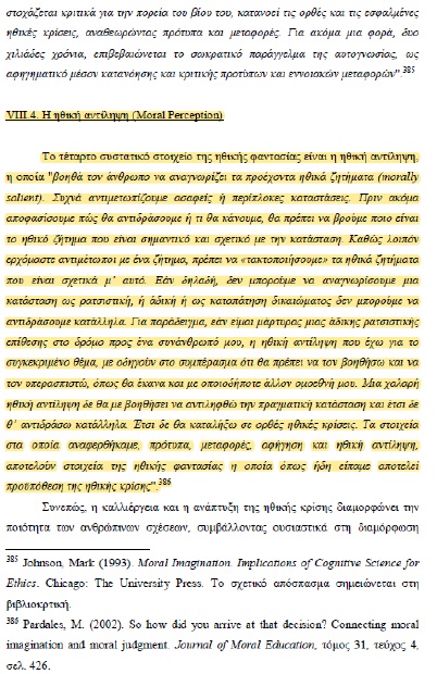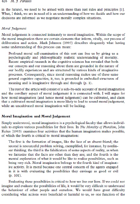 Pardales, M. (2002), «So how did you arrive at that decision? Connecting moral imagination and moral judgment», Journal of Moral Education, τόμ. 31, τχ. 4, σελ 426.