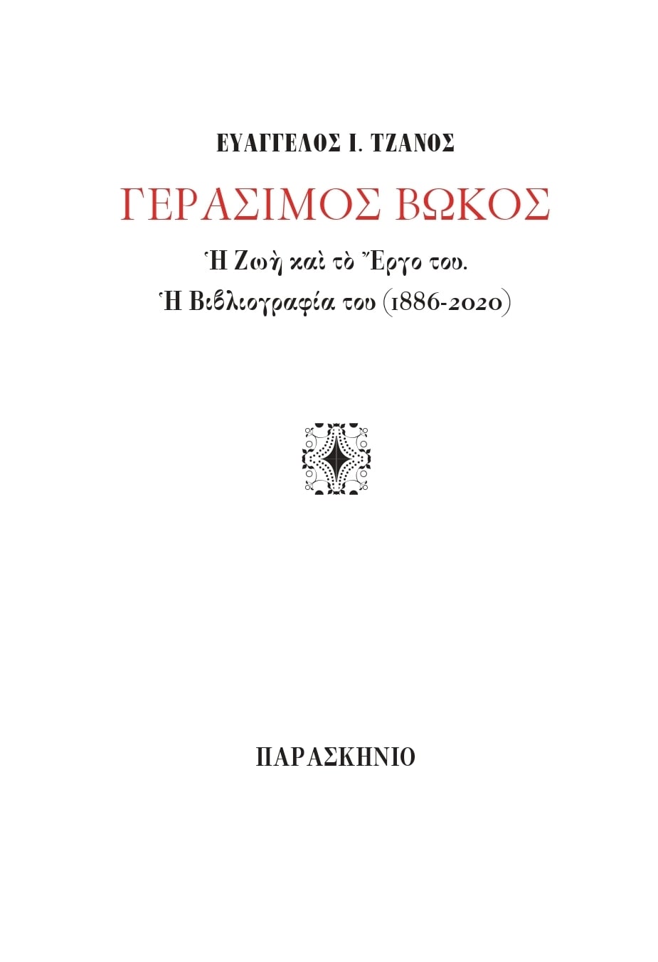 Εὐάγγελος Ι. Τζάνος, Γεράσιμος Βῶκος: Ἡ Ζωὴ καὶ τὸ Ἔργο του.