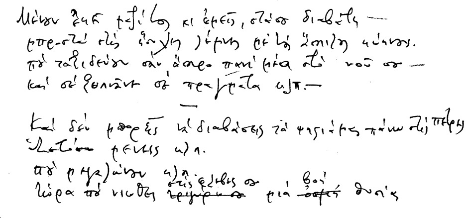 Κι αὐτὰ ποὺ γίνονταν εἶχαν τὴν ἴδια γαλήνη μὲ τοῦτα ποὺ βλέπεις