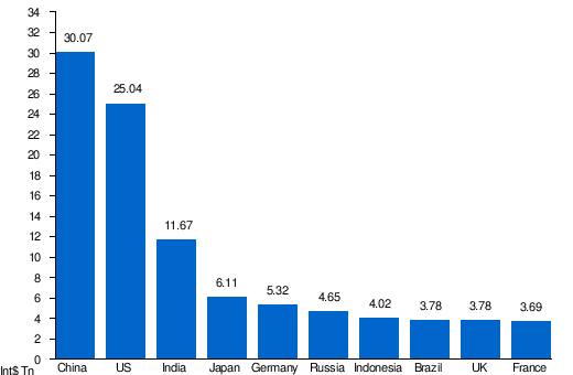 Οι δέκα πρώτες οικονομικές δυνάμεις του κόσμου με κριτήριο το ΑΕΠ κατά αγοραστική δύναμη. Η Ασία και οι BRICS δείχνουν τα δόντια τους, η ΕΕ αποχαιρετάει.