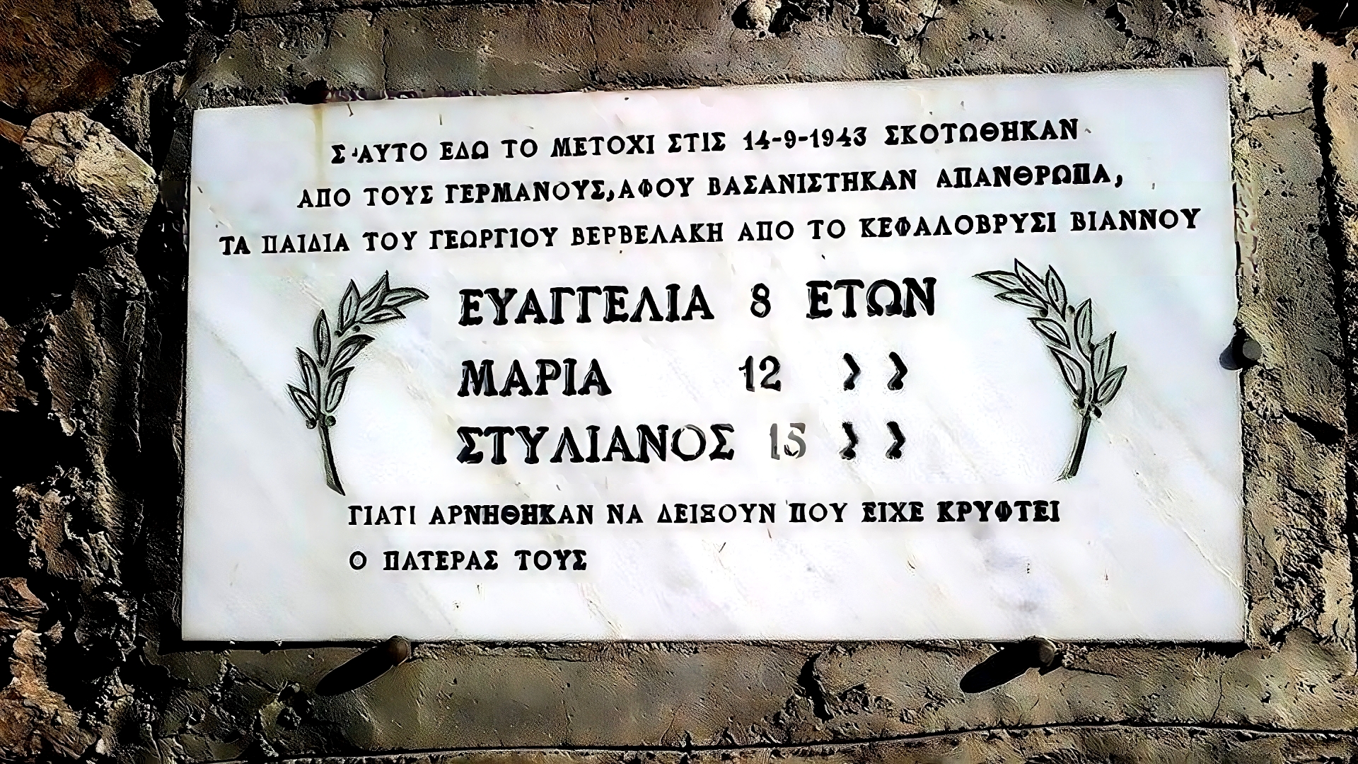 2. Ο Λευτέρης Σπανάκης γράφει στην ιστοσελίδα Viannitika https://www.viannitika.gr/el/giati-arnh8hkan το 2020: «Φυσιολογικά, ο Στυλιανός θα είχε φτάσει [σήμερα] τα 91 χρόνια, η Μαρία τα 88 και η Ευαγγελία τα 84. Φυσιολογικά… Τα αδέρφια Βερβελάκη, ο Στυλιανός 15 ετών, η Μαρία 12 και η Ευαγγελία 8, δεν ήταν τα μικρότερα σε ηλικία θύματα των Γερμανών. Ο γιος του Μανώλη Συμβουλάκη σκοτώθηκε από σφαίρα στα 6 του στην αγκαλιά του πατέρα του, όμως ούτε αυτός ήταν ο μικρότερος. Το μικρότερο θύμα ήταν… αγέννητο και βρισκόταν στην κοιλιά της 19χρονης Κατερίνας Παπαδημητροπούλου, η οποία ήταν 8 μηνών έγκυος όταν την ξεκοίλιαζαν οι Ναζί με μια ξιφολόγχη».