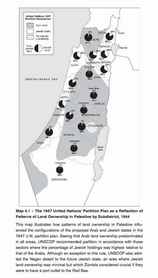 Στις 29 Νοεμβρίου 1947 η Γενική Συνέλευση των Ηνωμένων Εθνών εξέδωσε το ιστορικό ψήφισμα 181 υπέρ της διχοτόμησης της Παλαιστίνης. Σε μια σπάνια περίπτωση συμφωνίας κατά τη διάρκεια του Ψυχρού Πολέμου, οι Ηνωμένες Πολιτείες και η Σοβιετική Ένωση ψήφισαν υπέρ του ψηφίσματος, ενώ η Βρετανία απείχε. Το ψήφισμα καθόριζε ένα χρονοδιάγραμμα για τη δημιουργία ενός εβραϊκού κράτους και ενός αραβικού κράτους που θα συνδεόταν με οικονομική ένωση, καθώς και ένα διεθνές καθεστώς για την Ιερουσαλήμ. Εξαιρετικά μακριά και ελικοειδή σύνορα χώριζαν το εβραϊκό κράτος από το αραβικό, με ευάλωτα σημεία διέλευσης για να συνδέσουν τις απομονωμένες περιοχές του στην ανατολική Γαλιλαία, την παράκτια πεδιάδα και τη Νεγκέβ. Τα σύνορα αυτών των δύο περίεργα διαμορφωμένων κρατών, που έμοιαζαν με δύο μαχόμενα φίδια, ήταν ένας στρατηγικός εφιάλτης. Όχι λιγότερο ανώμαλη και ελάχιστα πιο βιώσιμη ήταν η δημογραφική δομή του προτεινόμενου εβραϊκού κράτους, που αποτελούνταν από περίπου 500.000 Εβραίους και 400.000 Άραβες.