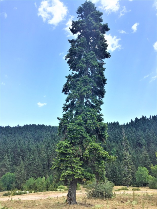 Στις πετρώδεις πλαγιές του βουνού συνάντησα το δέντρο που έδινε μαθήματα συμμετρίας με τη σεμνή και απέριττη παρουσία του. Πλησιάζοντας πιο κοντά το είδα να τρέμει και να αναφουφουλιάζει.