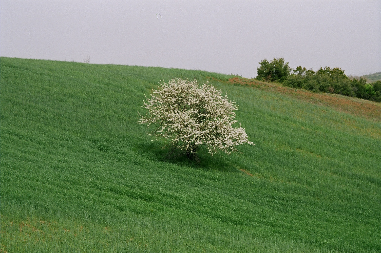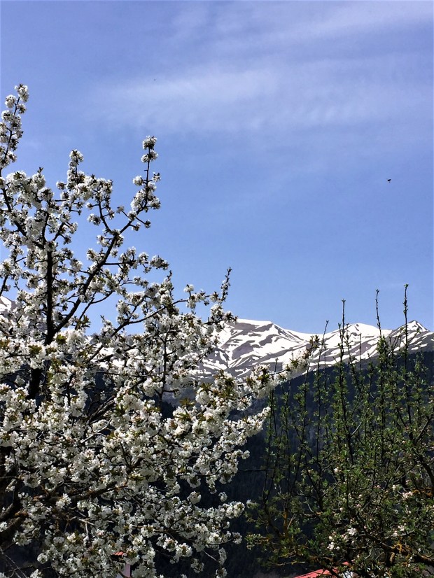Στη θέα της άχραντης χιονισμένης βουνοκορφής παρεμβάλλεται η πολύανθη μηλιά. Είναι ένας πολύφεγγος πολυέλαιος που αγλαΐζει τις ημέρες και τις νύχτες, που ημερεύει τους ανθρώπους και τους ερμηνεύει θετικά.