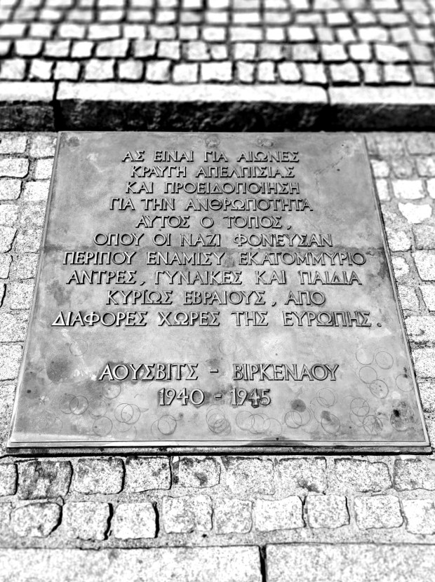 Σπάζω από την πρώτη στιγμή, όπου σα φοβισμένο γατί με γουρλωμένα μάτια περνάω από το υπόγειο επίπεδο στο επίπεδο του στρατοπέδου, ακούγοντας τα ονόματα των θυμάτων του, Εβραίων και μη. Σπάζω ολοκληρωτικά όταν, με μία εντελώς ουδέτερη αφήγηση, βλέπω κι ακούω όσα ήδη είχα δει κι ακούσει πάμπολλες φορές, όντως Ελληνίδα, με παιδεία ελληνική και γερμανική και δη στις ανθρωπιστικές σπουδές. Και αυτό δεν ήταν καν η αρχή, βγαίνοντας και πάλι στο φως για τη συνάντηση με την επιγραφή τη μία:
