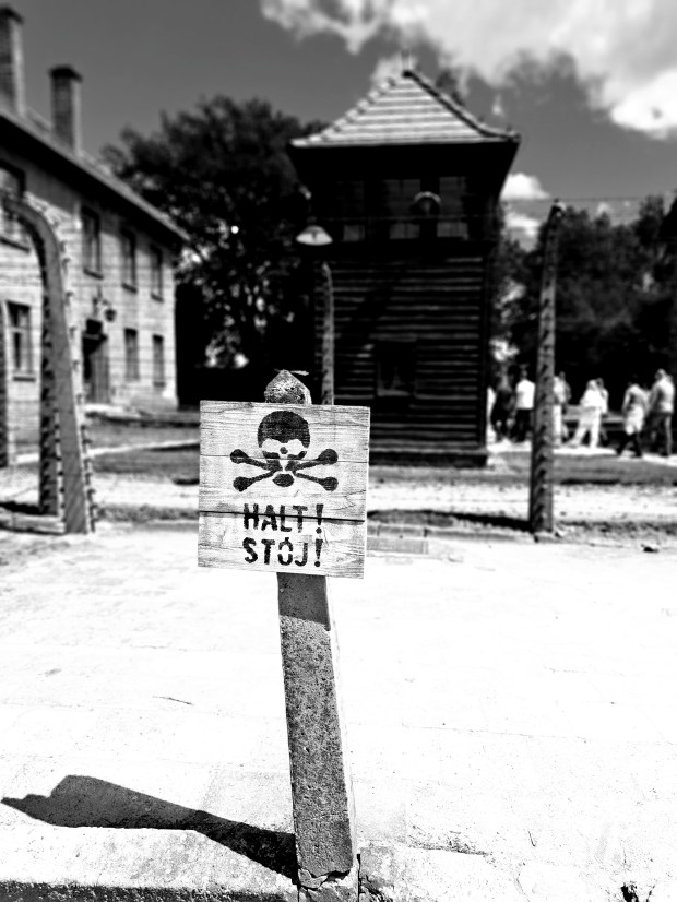 Η μέρα έφτασε και το οδοιπορικό ξεκίνησε. Μία ώρα απόσταση από το κέντρο της Κρακοβίας. Στο δρόμο, τα βαριά στρατιωτικά οχήματα από και προς Ουκρανία, κάποτε σε φάλαγγες, αλλά και η θλιμμένη όψη πεζών στρατιωτών με το σακίδιο και την κουβέρτα στον ώμο, υπενθύμιζαν ότι βρισκόμασταν στον προθάλαμο εμπόλεμης ζώνης, λούζοντάς μας με άλλου είδους ρίγος. Η διαδρομή, προσκύνημα διπλό. Δεξιά κι αριστερά, στο χείλος του δρόμου, περιποιημένες αυλές και κήποι με δενδρύλλια, λουλούδια, ακόμη και νάνους, αλλά και ιδιωτικά παρεκκλήσια. Μαντόνες, σε πυκνή διαδοχή, θαρρείς παρήλαυναν στο δρόμο, λες και οι γείτονες συναγωνίζονταν αναμετάξυ τους για το καλύτερο φραγκόκλησο. Μα αυτοί είναι päpstlicher als der Papst![3], σκέφτομαι, και ξάφνου συνειδητοποιώ γιατί η πόλη της Κρακοβίας είναι γεμάτη με αγάλματα του Πάπα Ιωάννη Παύλου του ΙΙ. Το προσκύνημα, όμως, ήταν και άλλο. Στο δικό μας όχημα προστίθενται και άλλα, προπορευόμενα ή εν κινήσει στο δρόμο, επίσης με γερμανικές πινακίδες. Όσο πλησιάζουμε το σημείο άφιξης, μάλιστα, πληθαίνουν. Θα ανήκουν στο ίδιο γκρουπ ξενάγησης, το δεύτερο γερμανόφωνο των τριαπέντε ατόμων για το πρωί του Σαββάτου, 1ης Ιουνίου 2024, στις 10:45 το πρωί. Η ατμόσφαιρα ολοένα και βαραίνει, μολυβίζει, οι κουβέντες ελάχιστες.