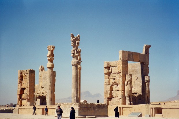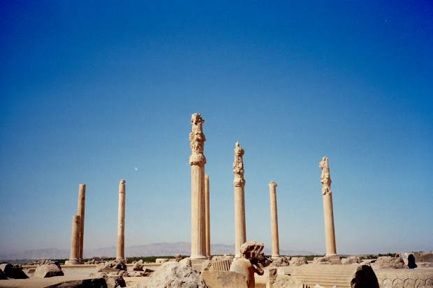 Περσέπολη: το μεγάλο θρησκευτικό κέντρο των Αχαιμενιδών, μία από τις περίλαμπρες πρωτεύουσές τους. Ο τόπος όπου εορταζόταν με θριαμβική και αυτοκρατορική λαμπρότητα ο ερχομός της άνοιξης και του Νέου Έτους (Νοουρούζ). Η Περσέπολη, για την ακρίβεια ό,τι έχει απομείνει από αυτήν μέχρι σήμερα, αποτελεί το επιβλητικότερο μνημείο της Αχαιμενιδικής περιόδου του Ιράν. Ταυτόχρονα και τον κύριο προορισμό των περισσότερων επισκεπτών στην χώρα. Είναι τόσο ισχυροί οι συμβολισμοί που ανακαλεί και συμπυκνώνει ώστε εκεί δεξιώθηκε κι ο σάχης τους υψηλούς προσκεκλημένους του (1971) για τον εορτασμό των 2500 χρόνων ίδρυσης της περσικής αυτοκρατορίας από τον Κύρο τον Μέγα. Σε μια δεξίωση εξωφρενικά επιδεικτικής χλιδής, που κόστισε αστρονομικά ποσά, άδειασε τα κρατικά ταμεία και συνέβαλε στην πτώση του ίδιου του σάχη. Αυτά όμως συνέβησαν αργότερα. Εδώ έχω κατά νου δυο ταξιδιώτες που περιτριγύρισαν την ένδοξη αχαιμενιδική πόλη, πριν την πτώση του σάχη.
