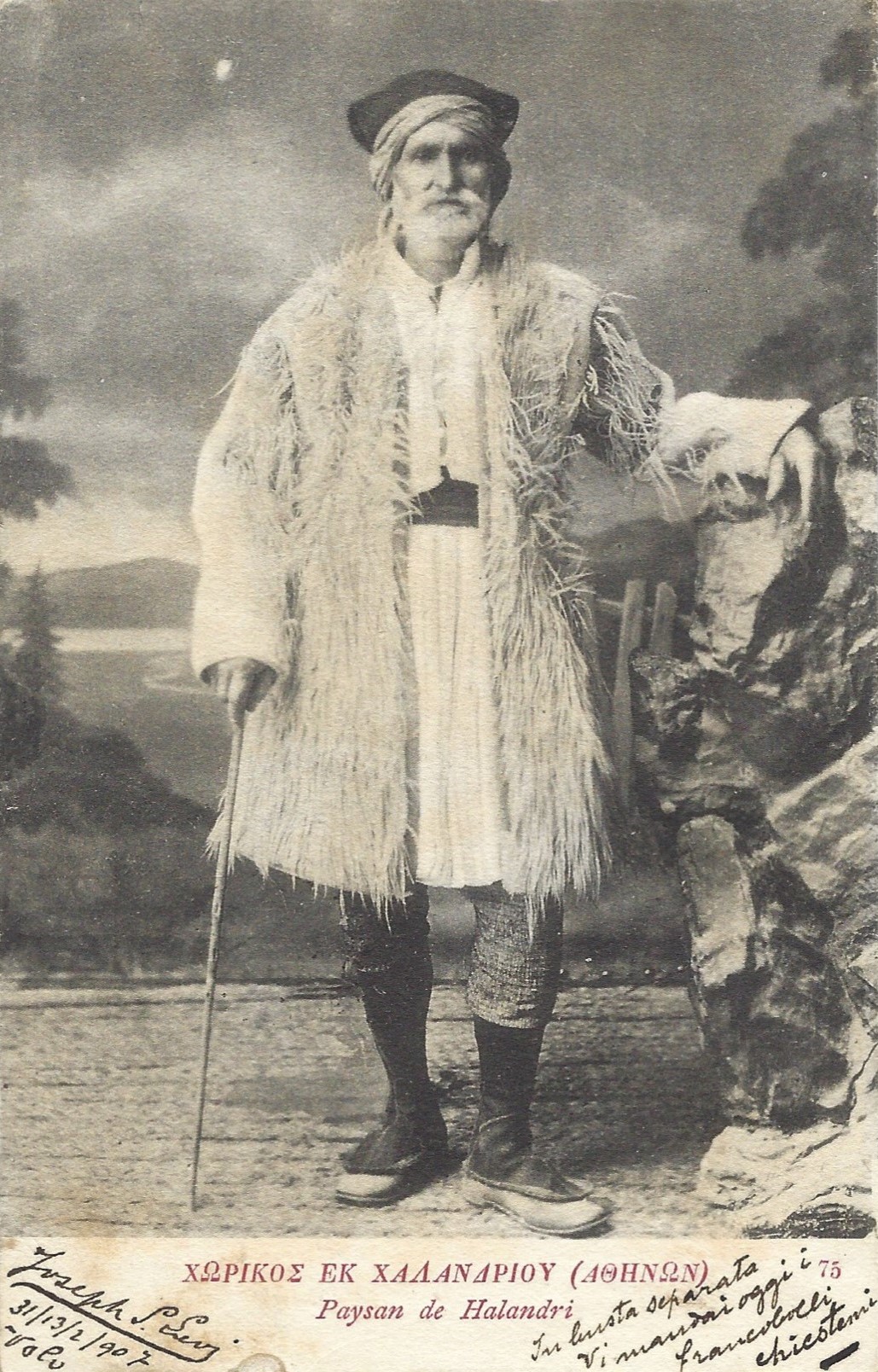 Χωρικός του Χαλανδρίου με την παραδοσιακή του ενδυμασία, σε καρτ-ποστάλ των αρχών του περασμένου αιώνα.