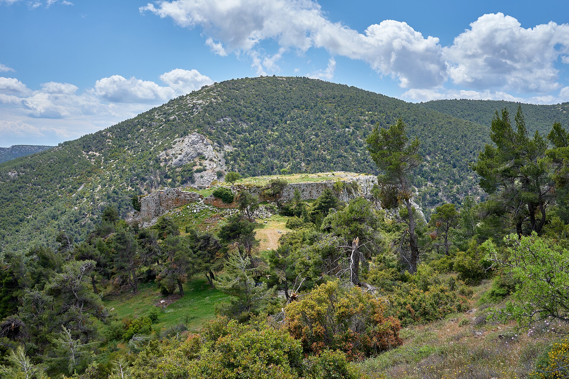 Τα ερείπια του φρουρίου σε φωτογραφία πριν από την πυρκαγιά του 2023 (Πηγή: Γ. Ε. Κορωναίος – Wikimedia commons).