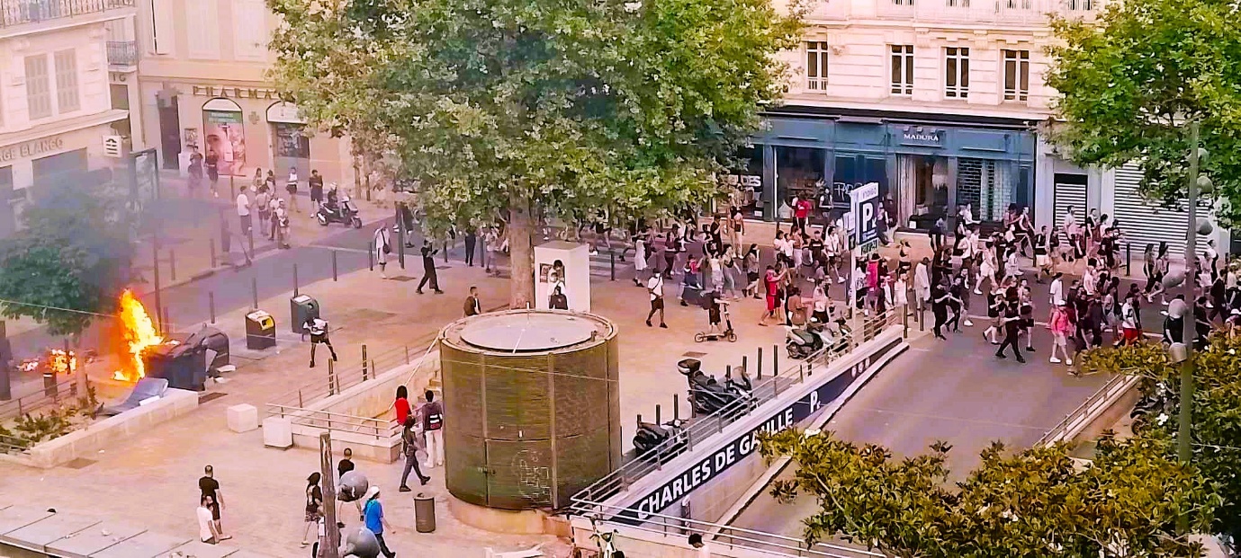 Αφού ανέβαινα την οδό Αθηνών (rue d’Athènes) κατευθυνόμενος προς τον σταθμό άκουσα δύο εκρήξεις. Λίγο αργότερα ενημερώθηκα για τα συμβάντα. Στην πόλη των παρισινών προαστίων, Ναντέρ, ένας αστυνομικός πυροβόλησε και σκότωσε ακαριαία έναν ανήλικα αφού εκείνος δεν σταμάτησε το όχημα κατά τις προσταγές του πρώτου. Είναι όμορφη κάθε εξέγερση.