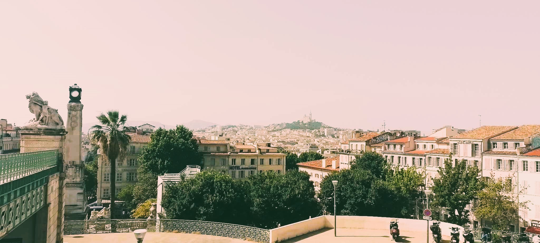 Πανοραμικό της Μασσαλίας από τον σταθμό Saint Charles. Στο βάθος διακρίνεται η εκκλησία Notre-Dame de la Garde.