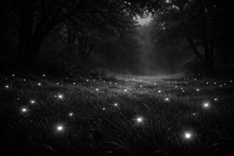 πυγολαμπίδες π’ αργοσβήνουν στο γρασίδι.
