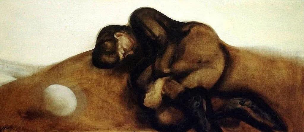 Α.Δ.: Μέσα στον επιθετικό πολιτισμό, η μοναξιά εκλαμβάνεται ως άμυνα, άμυνα καρτερική, αλλά ακλόνητη, δεν σπάει. Όσο και να λυγίζουν οι μορφές στα έργα σου, δεν σπάνε, δεν διαλύονται. Γέρνουν για ν’ αποτυπώσουν στην ύλη τη δική τους μνήμη του Παραδείσου, ή ατενίζουν. Είναι άραγε μνήμη του σκοταδιού πριν από τη δημιουργία του κόσμου; Η μορφή στο έργο σου μου δίνει την εντύπωση ότι συλλέγει και συμπυκνώνει εντός της το σκοτάδι του σύμπαντος για να μείνει η γη φωτεινή. Αλλά φωτιζόμενη εκ των έσω, σαν να φλέγεται εσωτερικά, σαν να πυρπολείται εσωτερικά και να εκπέμπει ένα στιλπνό φως και συγχρόνως πυκνό, απροσδιορίστου βάθους. Κι είναι φως, μόνο φως, όχι φωτιά.