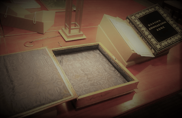 Η Ελισάβετ τράβηξε από το ράφι της μικρής βιβλιοθήκης την κασετίνα, όπου φυλασσόταν το λεύκωμά της, και του την έδωσε. Την πήρε στα χέρια του με  προσοχή και αναφώνησε με θαυμασμό: