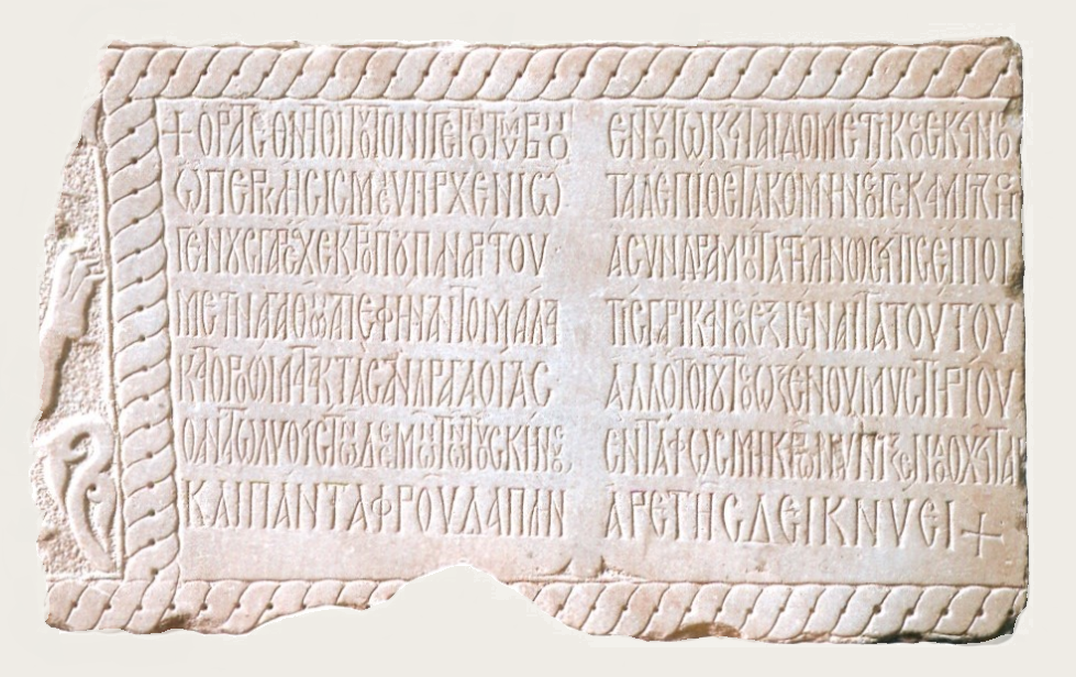 Στη δεξιά πύλη —για αυτόν που έρχεται μέσα από την πόλη— υπάρχει μία επιγραφή χαραγμένη στην παραστάδα της, η οποία μνημονεύει τα πρόσωπα που τη διάνοιξαν. Όπως και η η πύλη, το κείμενο διατηρεί ακόμα την αρχικό του σκοπό: βρίσκεται στη θέση του, έτοιμο να «μιλήσει» σε όποιον σταθεί να το διαβάσει. Τα γράμματα είναι κεφαλαία, στο ωραίο σχήμα της γραφής του ύστερου Βυζαντίου, και σώζονται σε πολύ καλή κατάσταση, πλην των τελευταίων σειρών, όπου μερικά έχουν σβηστεί εξαιτίας μιας βαθιάς ρωγμής και κάποιων ανθρώπινων χεριών. (περισσότερα…)