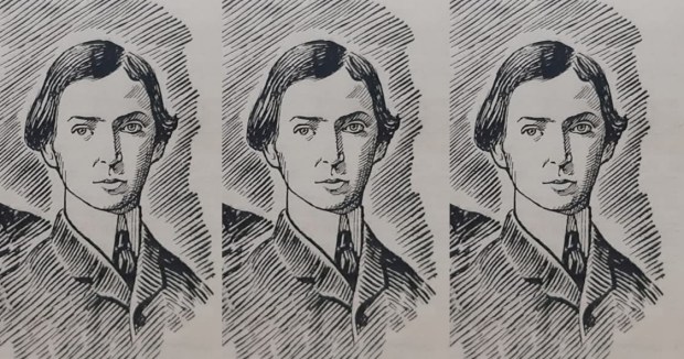 Σκίτσο που απεικονίζει τον ποιητή από το εξώφυλλο της Ελληνικής Δημιουργίας (τχ. 86, «Η Μάνη και οι λογοτέχνες της – Πασαγιάννηδες»).