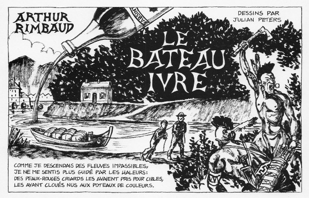 Τόσο πολύ χαράχτηκε μέσα μου που το είχα σχεδόν αποστηθίσει ολάκερο. Το σφρίγος κι εικονοποιητική ζωντάνια του Μεθυσμένου καραβιού με βρήκανε σε μια στιγμή που η ψυχή μου είχε ήδη ποντιστεί βαθιά μέσα στον λυρισμό. Είχα δε μείνει για καιρό με την ακλόνητη σιγουριά ότι αυτό ήταν όλο κι όλο το ποίημα, πλώρη-πρύμνη, ως την 14η στροφή, όπως την είχε η ανώνυμη μετάφραση της εγκυκλοπαίδειας. Έφτασα πια στο τέλος των λυκειακών χρόνων για να μάθω πως το μυθικό καράβι δεν ήταν τελικά τόσο μικρό, αλλά είχε εικοσιπέντε –αντί για δεκατέσσερα– τετράστιχα. Τότε ήταν κι η εποχή που διάβασα τον Ρεμπώ αλλά και τον αγάπησα περισσότερο. Αν κι ίσως βέβαια ν’ αγάπησα πάνω απ’ όλα τον μύθο που ’σερνε τ’ όνομά του, καθώς λευκή τ’ αφρού γραμμή, κυματιστή, που αφήνουν πίσω τους τα πλοία. Τώρα που ξανακοιτάζω πάλι εκείνη τη σελίδα της παλιωμένης μα ιλλουστρασιόν εγκυκλοπαίδειας, διαβάζω σαν σε φθαρμένη αρχαία επιγραφή και τις λέξεις: τυχοδιωκτικές περιπέτειες… πρωτόγονου αισθησιασμού, κι αναρωτιέμαι τι αχνάρι μπορεί και ν’ άφησαν στον εφηβικό μου ψυχισμό, τι αποτύπωμα μελλοντικό. Ας είναι…