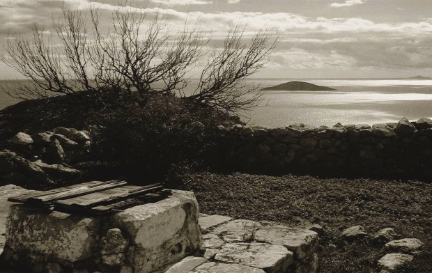 Τόνε βλέπεις ἀπὸ τὸ κατάστρωμα τοῦ πλοίου νά ’ρχεται πρὸς τὸ μέρος σου κατάξερος κι ἀγέλαστος, πελώριο πέτρινο μνημεῖο κάποιας παλιᾶς γεωλογικῆς καταστροφῆς, κι ἀπογοητεύεσαι. Τόση γύμνια, στοχάζεσαι, τόση φυτικὴ πενιχρότητα εἶν’ άδύνατο νά ’χει κάποιο στοιχεῖο ὀμορφιᾶς.