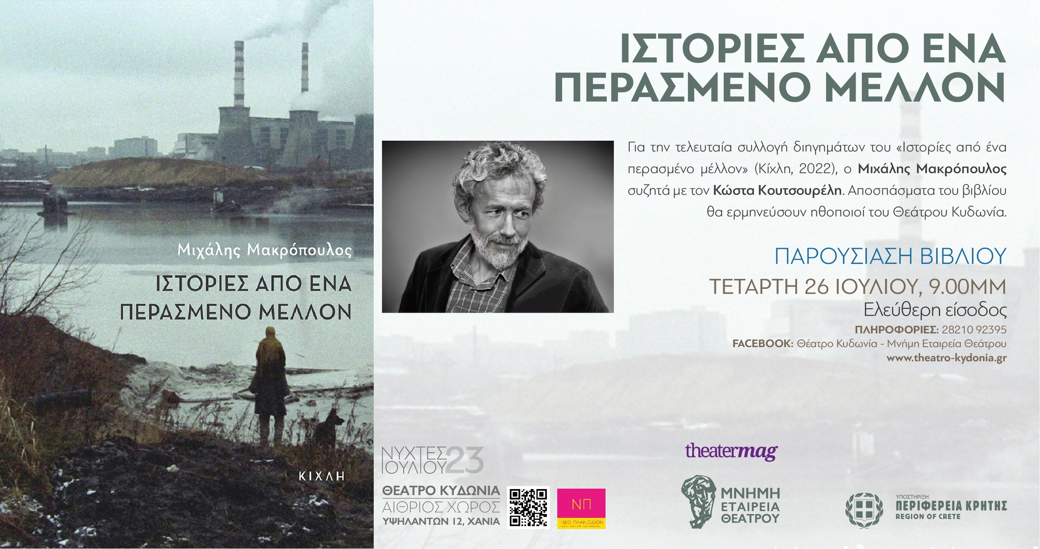 Το Θέατρο Κυδωνία και το περιοδικό Νέο Πλανόδιον, για ένατη συνεχή χρονιά εφέτος, διοργανώνουν στον ΑΙΘΡΙΟ ΧΩΡΟ του Θεάτρου στα Χανιά, Υψηλαντών 12, αλλά και σε επιλεγμένους χώρους εκτός θεάτρου, τις Νύχτες του Ιουλίου.